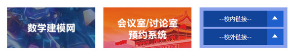 底部为学校和学院相关系统的快捷接入(学业与发展支持中心、教学管理系统、飞行器数学建模与高性能计算工业和信息化部重点实验室、数学建模网、会议室/讨论室预约系统等5个系统)以及校内外链接。
