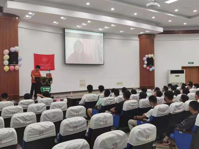 轮到同学们自我介绍环节时则别出心裁地采用了“击鼓传 花”的形式,在轻快的氛围中,同学们走上讲台介绍自己,认识彼此。现场氛围达到高潮。线上的同学们也逐一打开摄像头与大家“云见面”,期待疫情结束后与同学们相聚,为深厚的同班情谊写下开端。