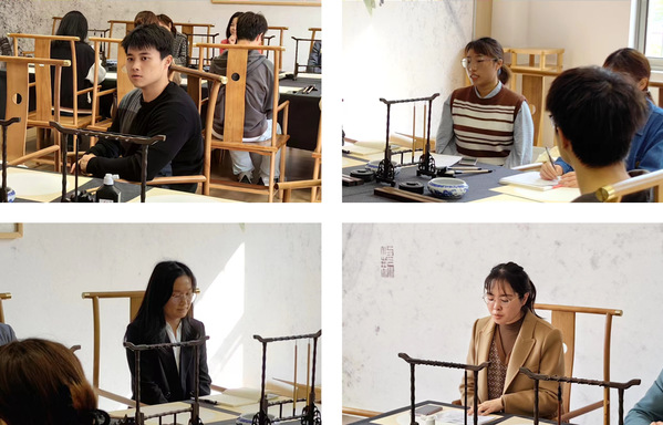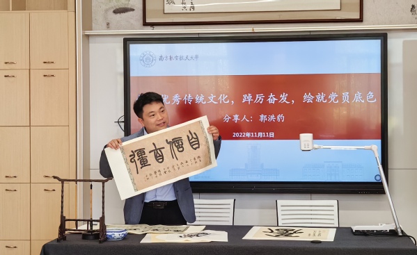 郭洪豹老师通过讲解“奋”字的书写演变,带领两支部党员们从书法视角感受“奋”的丰富内涵。随后,师生党员共同书写“奋”字,在书写中进一步体悟“奋斗”,深刻理解二十大报告精神。