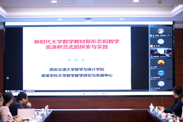 会上,西安交通大学李继成教授做“新时代大学数学教材新形态和教学资源新范式的探索与实践”专题报告。从建材建设理念、教材内容编排、教材结构呈现三个方面提出教材的新形态和教学资源的新范式。