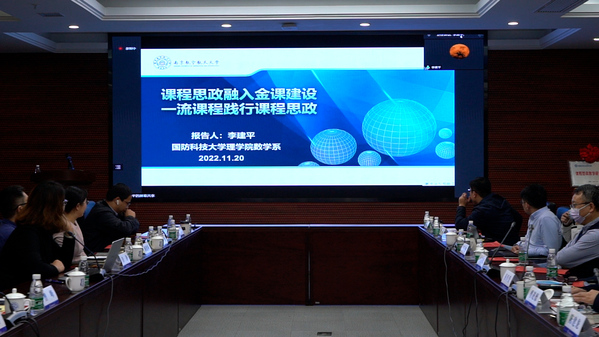 国防科技大学李建平教授做“课程思政融入金课建设,一流课程践行课程思政”专题报告。从理解思政内涵、构建思政体系、践行课程思政、形成思政特色四个方面谈大学数学金课建设,分享课程教学中如何挖掘思政元素。
