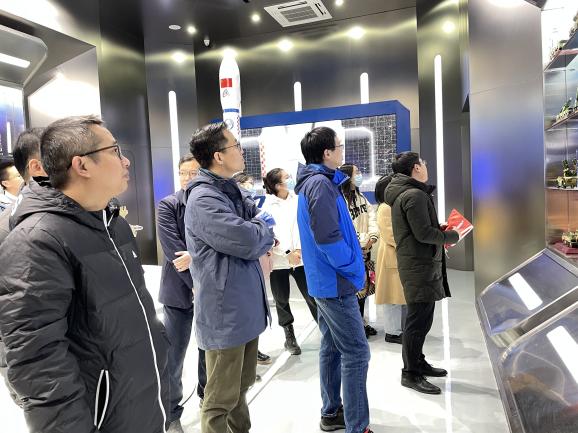 在航天学院副院长朱旭东的专业讲解下,共建双方一同参观了航天教育教学基地,老师们循着中国航天史的发展脉络,在航天强国建设蓝图的历史印迹中,感悟“两弹一星”精神、载人航天精神、探月精神、北斗精神等中国航天精神谱系内核,感受南航人用实际行动践行“为党育英才、为国铸重器”的使命担当。