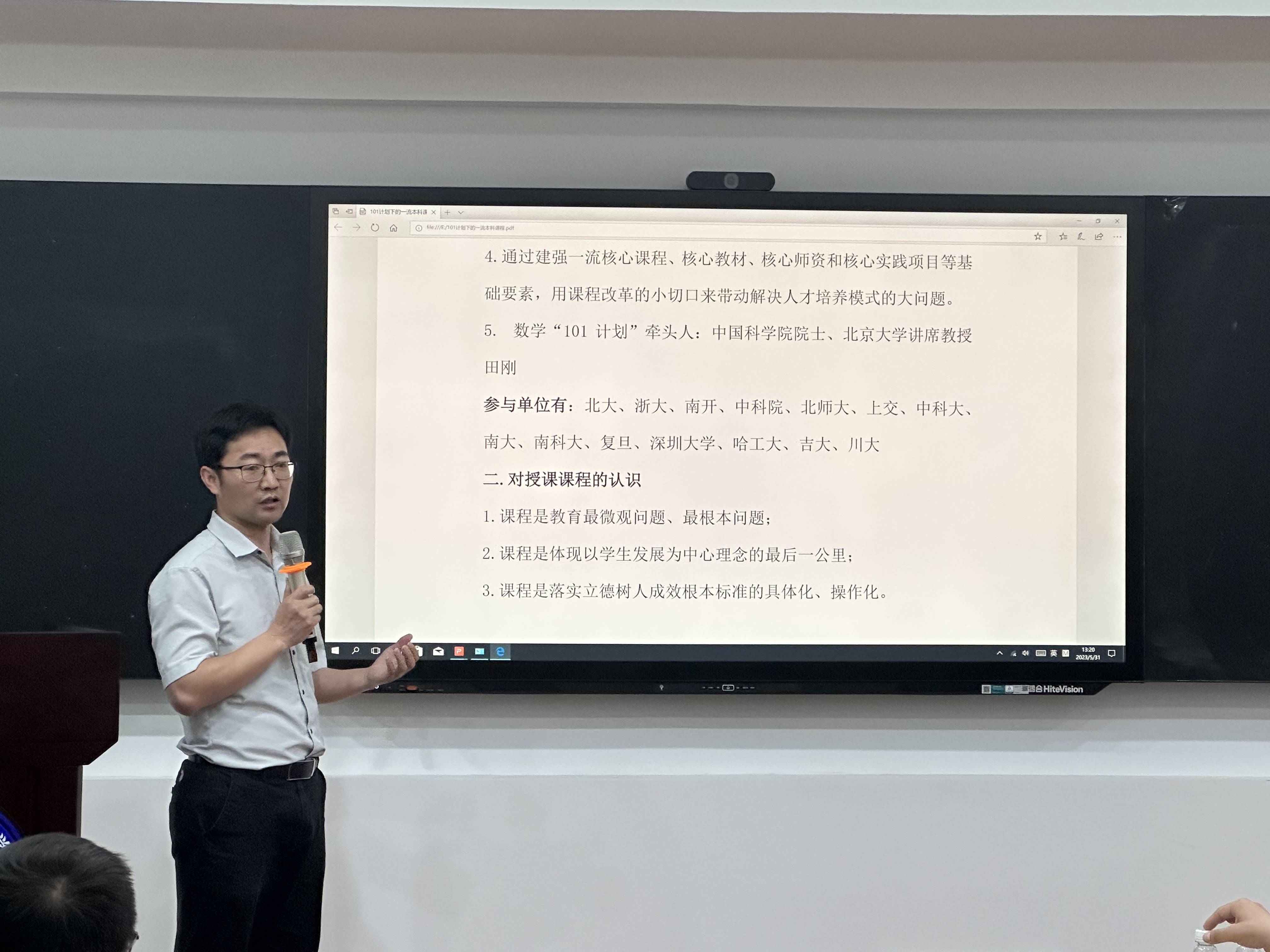龚荣芳老师分享了“101计划”引领下的一流本科课程建设。他从一流课程建设背景、大学数学混合式一流课程的建设、大学数学课程“课程思政”的融入探索、大学数学课程建设成效四个方面阐述课程建设的举措、成果和下一步计划,向与会教师充分展示教学经验。