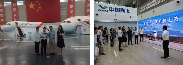在上海飞机制造有限公司,工装中心副主任叶晓云、人力资源部副部长候佩领陪同师生们参观了“永不放弃”雕塑广场、数控智能工厂、ARJ21总装生产线、C919总装生产线等。商飞人永不放弃的精神、大国工匠风采让师生们深为感动。在座谈环节,师生与来自各部门的校友代表进行了深入交流。侯佩领介绍了公司发展情况及人才政策。校友们介绍了在上飞公司的发展情况、所在部门人才、项目需求情况等。许静表示,上飞公司是南航人事业发展的热土,非常高兴看到校友们在上飞公司的良好发展,希望以校友为桥梁,进一步密切上飞公司和南航的联系。王春武详细介绍了学院与飞机制造关联度较高的科研团队及研究内容,就校企科研、育人合作进行了交流。