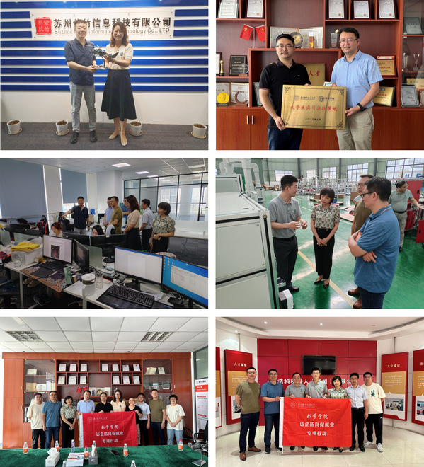 在苏州紫竹信息科技有限公司,总经理孙向明详细介绍企业游戏业务及技术逻辑,表达了企业对数学人才的迫切需求。知行机器人科技(苏州)有限公司总经理白国超陪同一行人参观企业展厅,对公司产品功能进行了介绍和现场演示,双方就机器人算法研究等内容进行了交流。在浩科机器人(苏州)有限公司,总经理张家奇带领一行人实地参观企业生产车间,详细介绍公司的产品创新过程及生产研发过程中的难点。在参观后的座谈交流中,校企双方就如何促进大学生实习实践与助力企业发展相结合、提升校企联合育人水平进行了深入交流,就建设学生实习实践基地、以基地为载体建设长效合作机制达成了初步意向。