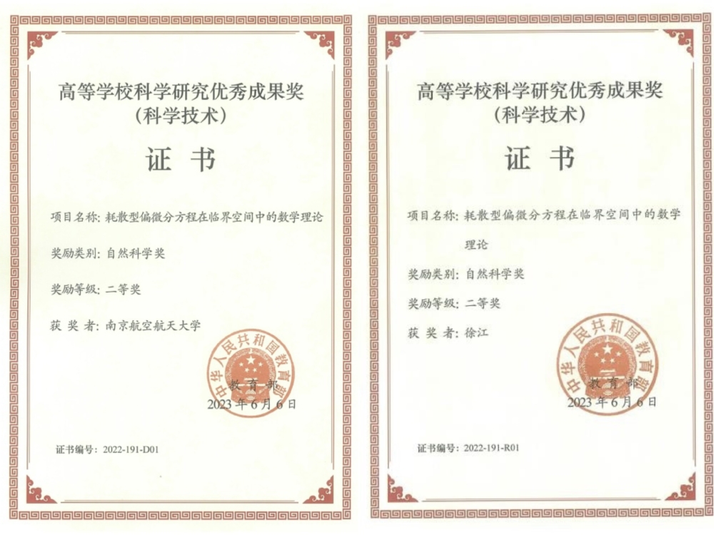 教育部于6月下旬发布了2022年度高等学校科学研究优秀成果奖(科学技术)的授奖通知。以桃子视频 为第一完成单位,桃子视频 徐江教授为第一完成人的成果“耗散型偏微分方程在临界空间中的数学理论”荣获自然科学奖二等奖。该奖项由我校联合香港中文大学和暨南大学申报,桃子视频 徐江教授,段仁军教授,刘双乾教授为主要完成人。