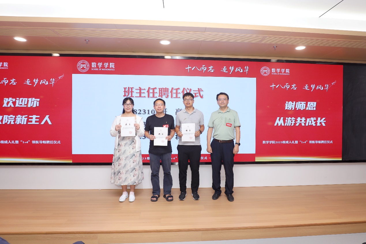活动伊始,许静为2023级“1+4”领航导师颁发聘书,王春武为班主任们颁发聘书。接过代表身份与责任的聘书,导师们、班主任们将与同学们在新的征程上共同扬帆起航。