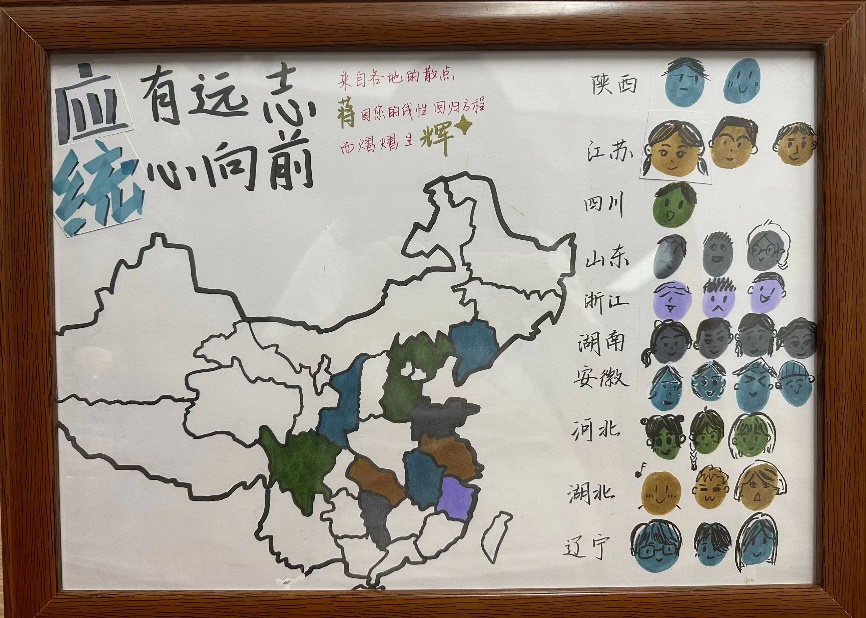 各班同学也为班主任们送上暖心祝福。0823101班以全体同学的祝福语制作祝福相框赠与班主任高益铭老师;0823102班的同学为班主任顾燕用明信片制作了一串凝聚同学们的暖心祝福的风铃;082401班精心绘制“401班家庭”地图,来自天南海北的同学们相聚南航,在未来的旅程中携手同行。同学们的心意深深打动了班主任们,班主任们勉励同学们珍惜大学光阴,把握机会,在求学之路上奋发图强,砥砺前行,收获美好未来。