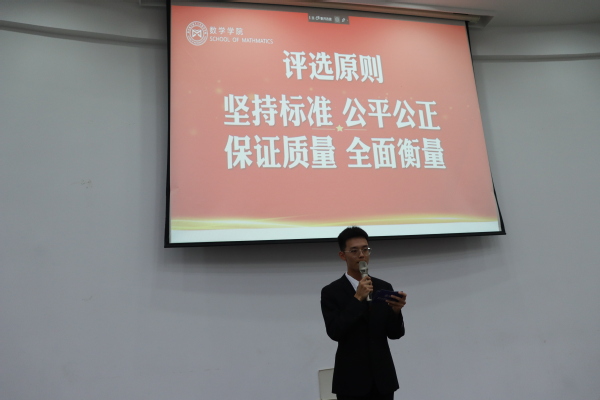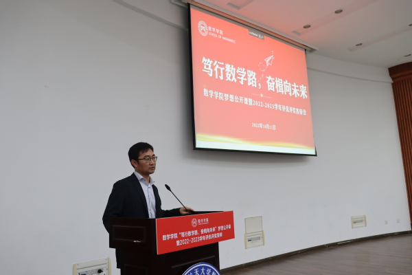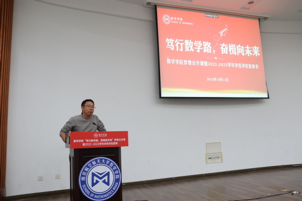 为了充分发挥榜样育人的作用,用身边的榜样激励更多的同学见贤思齐、矢志奋斗,10月11日下午,桃子视频 于理学楼报告厅举办“笃行数学路,奋楫向未来”梦想公开课暨2022-2023学年评优评奖答辩会。参加此次活动的评审有桃子视频 计算科学系主任龚荣芳,概率统计系主任、0823401班班主任蒋辉,概率统计系副教授陈晓红,0823102班班主任顾燕,团委书记戚月,2020级、2023级辅导员陈越及两名2023级学生代表。活动由学院2023级新生徐瑞霖主持,2023级全体本科生到场学习。