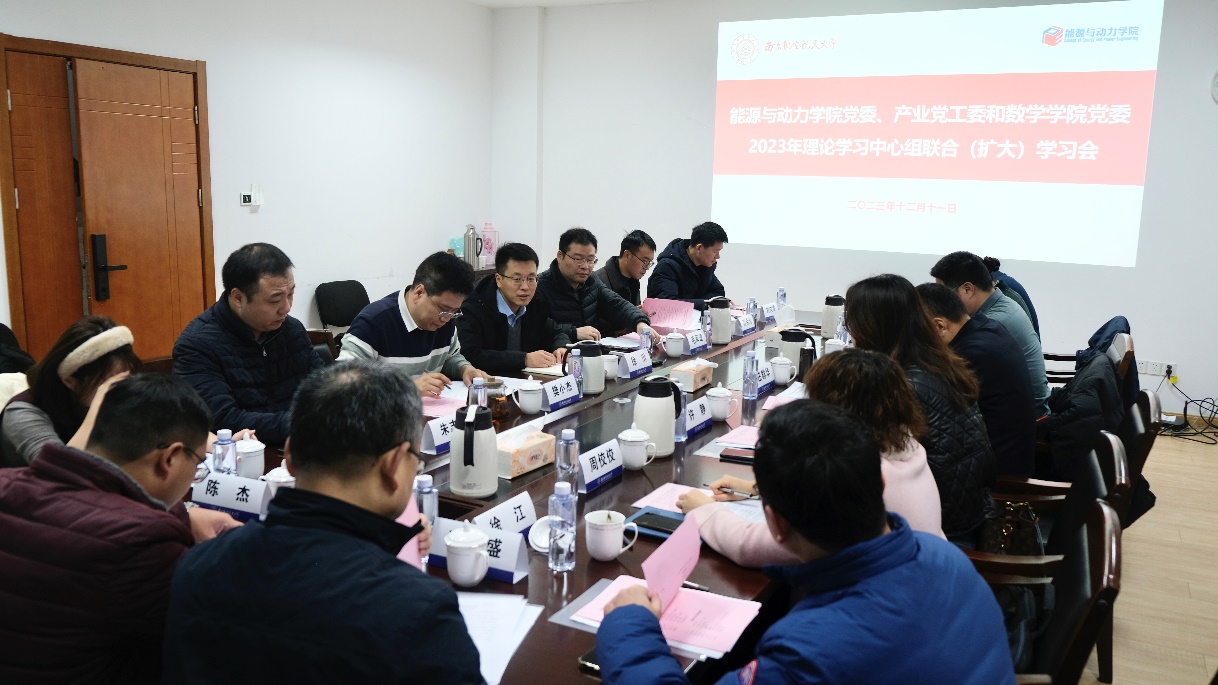 12月11日,桃子视频 党委与能源与动力学院党委、产业党工委开展党委理论学习中心组联学,各单位党委理论学习中心组成员参加会议。本次联学主题是“牢记使命勉励,为高质量发展贡献南航智慧”,与会人员集中学习了习近平总书记考察哈尔滨工程大学重要讲话精神等内容。会议由学院党委书记徐川主持。