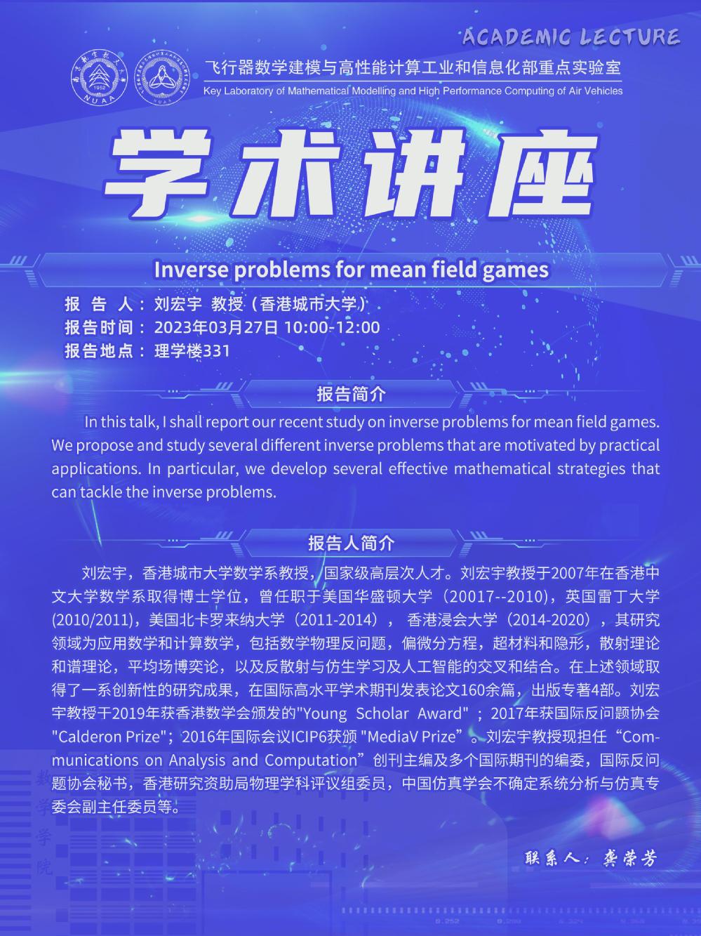 【学术讲座3.27 刘宏宇 香港城市大学】