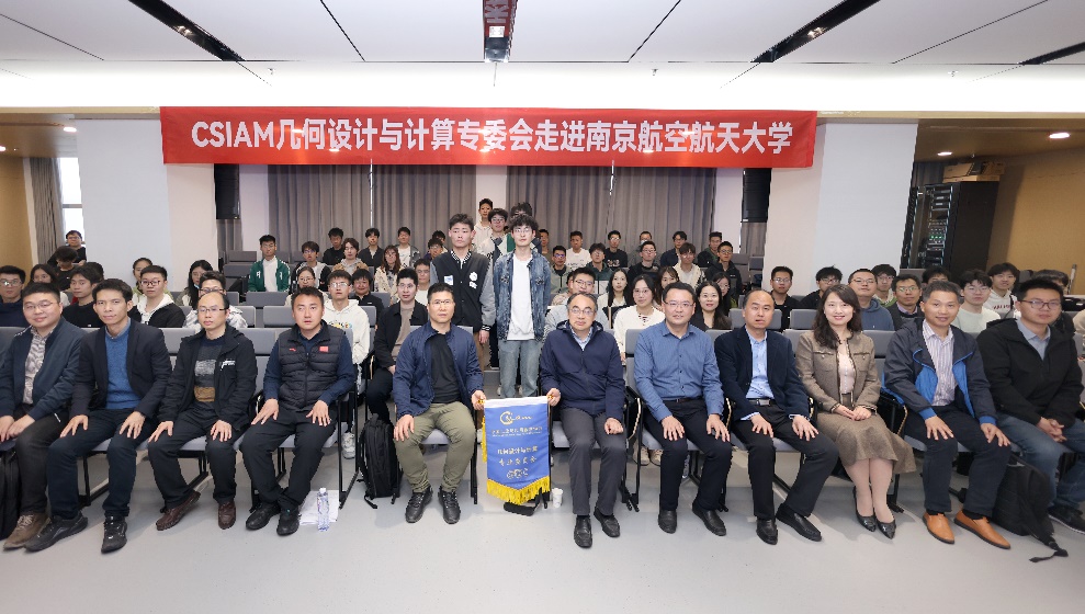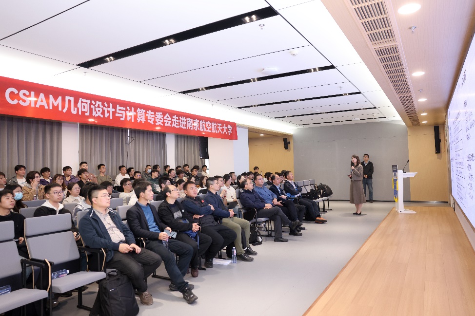 3月23日,“中国工业与应用数学学会(CSIAM)几何设计与计算(GDC)专委会走进高校” 活动在桃子视频 1号楼20楼会议室顺利举办。专委会原主任、国家杰青、国家万人计划教学名师、中国科学技术大学陈发来教授,专委会副主任、国家重点研发计划首席科学家、中科院数学与系统科学研究院贾晓红研究员,专委会副主任、广联达科技股份有限公司副总裁李宾博士,专委会副秘书长、中国科学技术大学陈仁杰教授,航空航天结构力学及控制全国重点实验室副主任、南航机电学院汪俊教授,南航计算机学院魏明强教授以及来自中国科学技术大学、西安交通大学、厦门大学、南京理工大学、河海大学、苏州大学、中国船舶集团海舟系统技术有限公司等高校企业的100多位师生员工参加活动。桃子视频 院长王春武教授出席活动,活动由桃子视频 教师潘茂东主持。