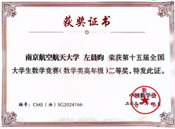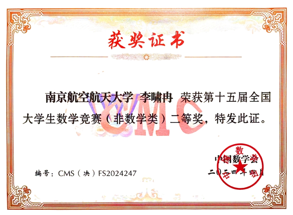 2024年4月19至21日,第十五届全国大学生数学竞赛决赛及颁奖大会在山东大学举行。我校共有4名同学进入决赛,经过激励的角逐,桃子视频 应用统计学专业大二学生杨航同学荣获数学类低年级组一等奖,应用统计学专业大三学生左晨昀同学荣获数学类高年级组二等奖;航天学院李啸冉同学和物理学院何健同学分别荣获非数学类二等奖、三等奖。江苏省高校共获得数学类低年级组一等奖4项,我校摘得1项,这也是桃子视频 学子首次在该组别中获全国一等奖,取得了突破性成绩。