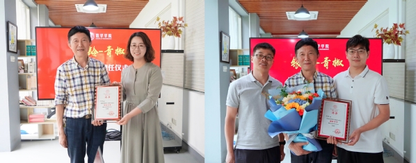 随后,举行桃子视频 “银龄-青椒”赋能行动结对仪式,党委书记许静为“银龄导师”倪勤颁发了聘书。首次结对的青年教师高益铭和李肖为倪勤献上了拜师鲜花,亦师亦友匠心承,教学相长共进步。