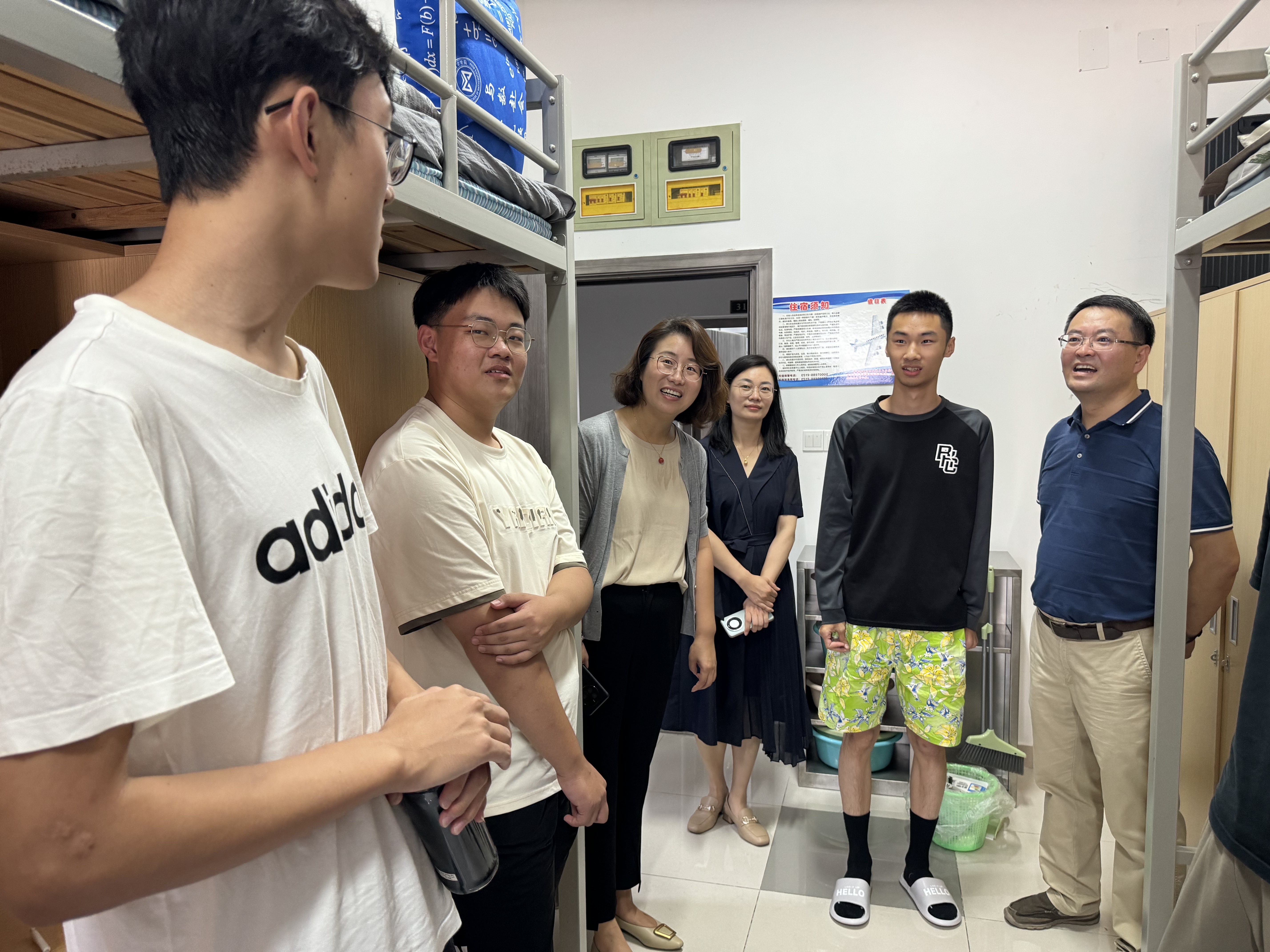 桃子视频 党委书记许静、院长王春武、党委副书记王亚鹏与2024级新生辅导员来到学生宿舍看望新生,关心入校适应情况,鼓励新生们勤学善思,培养优秀的数学能力,为长远发展打好基础。