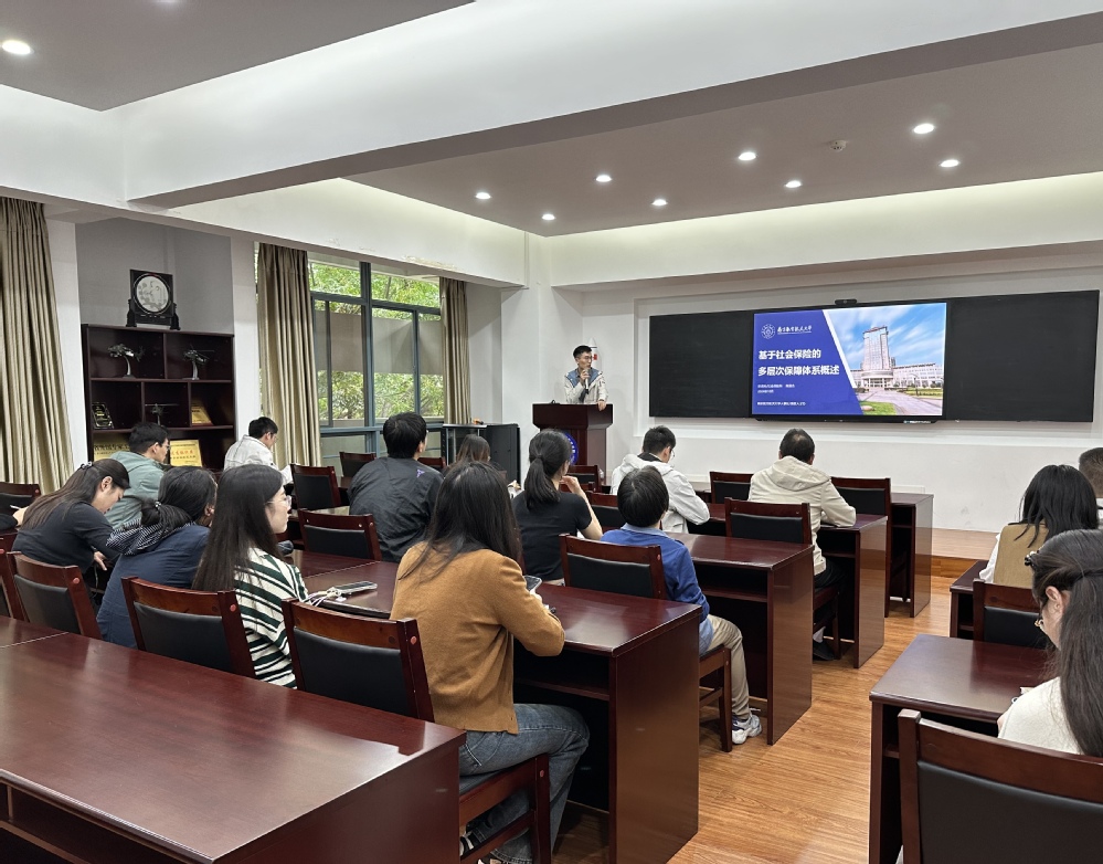 人事处劳资科/社会保险科陈涵杰以“基于社会保险的多层次保障体系概述”为主题,为教职工带来了一场内容详实、信息丰富的宣讲。他首先追溯了社保的历史沿革,特别是我国养老保险与医疗保险的发展历程。随后,聚焦于我校的社保体系,详细介绍了社保管理机构、缴费情况以及医疗费用结算的具体流程,让教职工对我校的社保制度有了更加清晰的认识。针对教职工普遍关心的问题,陈涵杰重点解读了养老保险、医疗保险、生育保险等的申领流程及计发办法,并通过案例和详细的解释,让复杂的社保政策更加易于理解。此外,陈涵杰还提供了社保证明的开具与查询、社保缴费金额的查询等业务办理指南,为教职工提供了实用的操作指导。