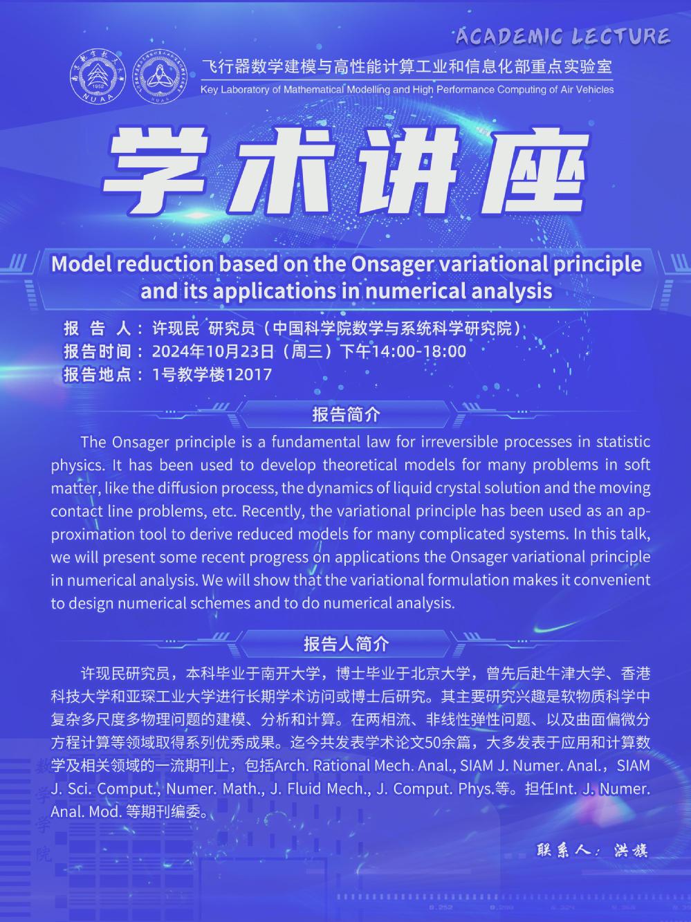 【学术讲座10.23 许现民 中国科学院数学与系统科学研究院】