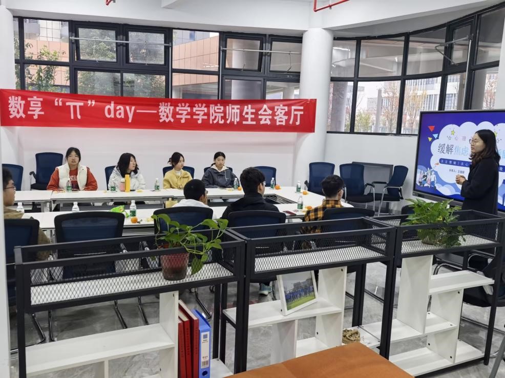 11月25日上午,桃子视频 于天目湖校区“一站式”学生社区举办数享“π”day—师生会客厅第7期活动。心理健康中心专职心理咨询师王俊丽、24级辅导员赵美婷以及学生代表共同参加活动。