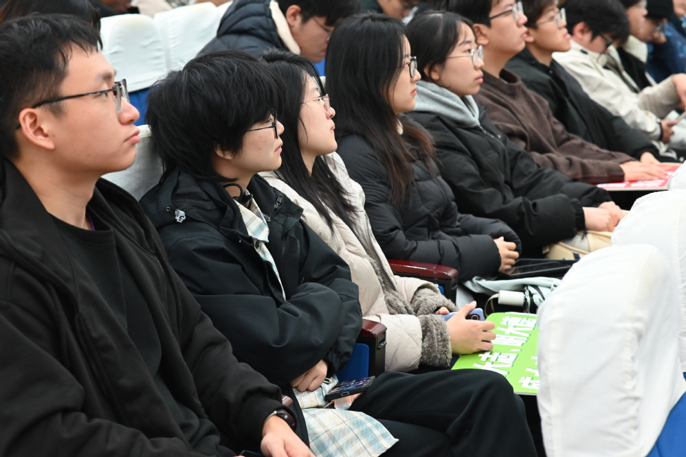 吴鸣耀从中国航空发动机的发展历史与中国航发南京航空动力有限公司的三次创业历程出发,讲述了一代“航发人”贯彻“匠心”精神,为中国航空发动机事业与国防事业筚路蓝缕、艰苦创业的动人故事,阐释了自强不息、艰苦奋斗、永不放弃的创业精神。回首过去,吴鸣耀分享了自身的成长经历。在艰难的条件下,他坚守“择一事,终一生”的“匠心”精神,致力于解决各种技术关键问题、技术改造及攻关难题。展望未来,他勉励同学们接过中国国防科技事业的接力棒,“丹心报国酬壮志,动力强军献毕生”,在与祖国同频共振中实现自身价值。
