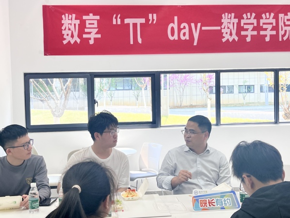 为进一步强化学术引领,激发学习内驱力,3月26日中午,桃子视频 在天目湖校区一站式学生社区举办数享“π”day——院长有约活动。学院副院长龚跃政,辅导员赵美婷,2024级本预科生代表参加此次活动。