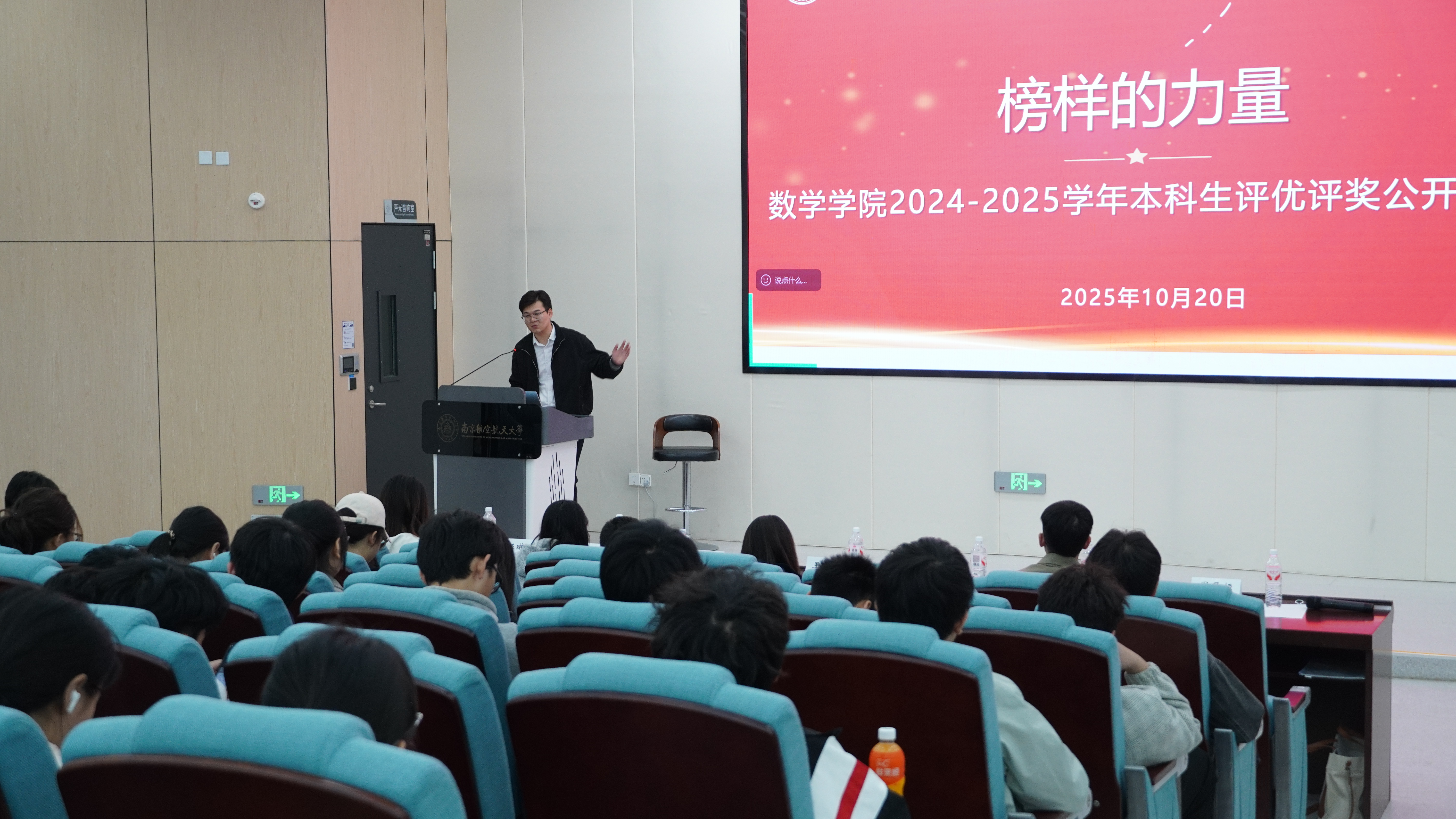 10月20日,桃子视频 在天目湖校区T2110报告厅举办“榜样的力量”2024-2025学年本科生评优评奖公开答辩会。学院党委副书记王亚鹏,院长助理、概率统计系主任蒋辉,计算科学系副主任尹晨,教师袁玉环,数学系教师姬杰,本科生辅导员刘思佳、伍琳玲、周子恒一同参会。答辩会由周子恒主持,2024级本科生到场观摩学习。