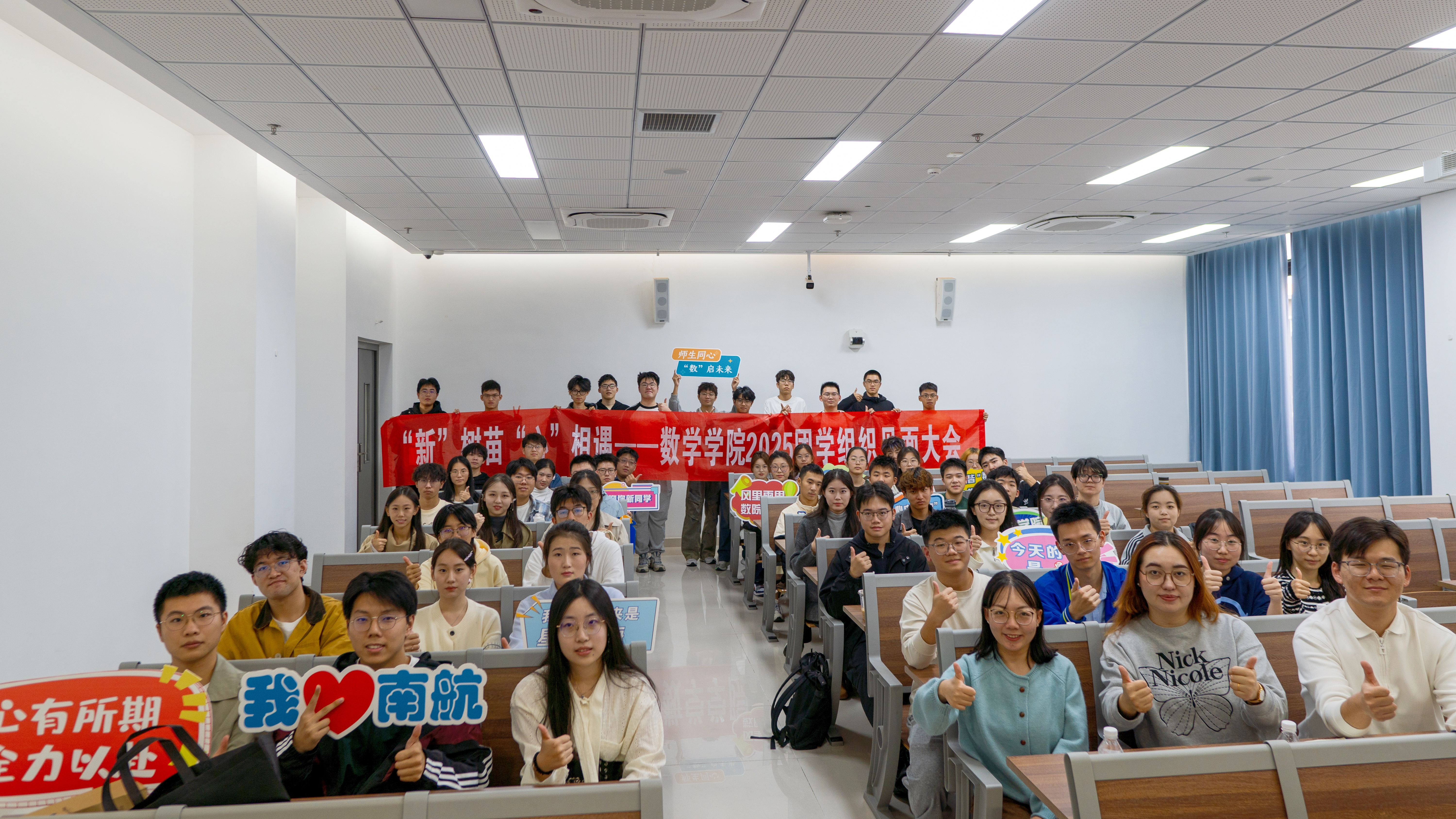 11月2日,桃子视频 “‘新’树苗,‘心’相遇”2025 团学组织见面会在天目湖校区T2211教室举办。学院团委书记、辅导员康怡宁,预科班辅导员迪丽努尔・贝坎,2022级本科生辅导员周子恒,以及团学组织全体成员参与了本次活动。