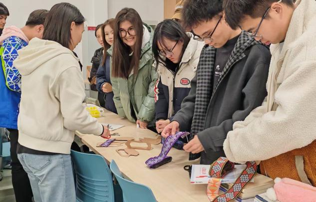 活动伊始,同学们精心录制的竹竿舞展示视频,瞬间将在场师生带入北海涠洲岛的多元地貌、德天瀑布的飞瀑流泉之中。互动体验时,各族同学围坐一堂,巧制壮锦书签、细尝荔浦芋头、共话工艺传承,氛围热烈融洽,尽显广西温润厚重的民俗底蕴与山水灵韵。
