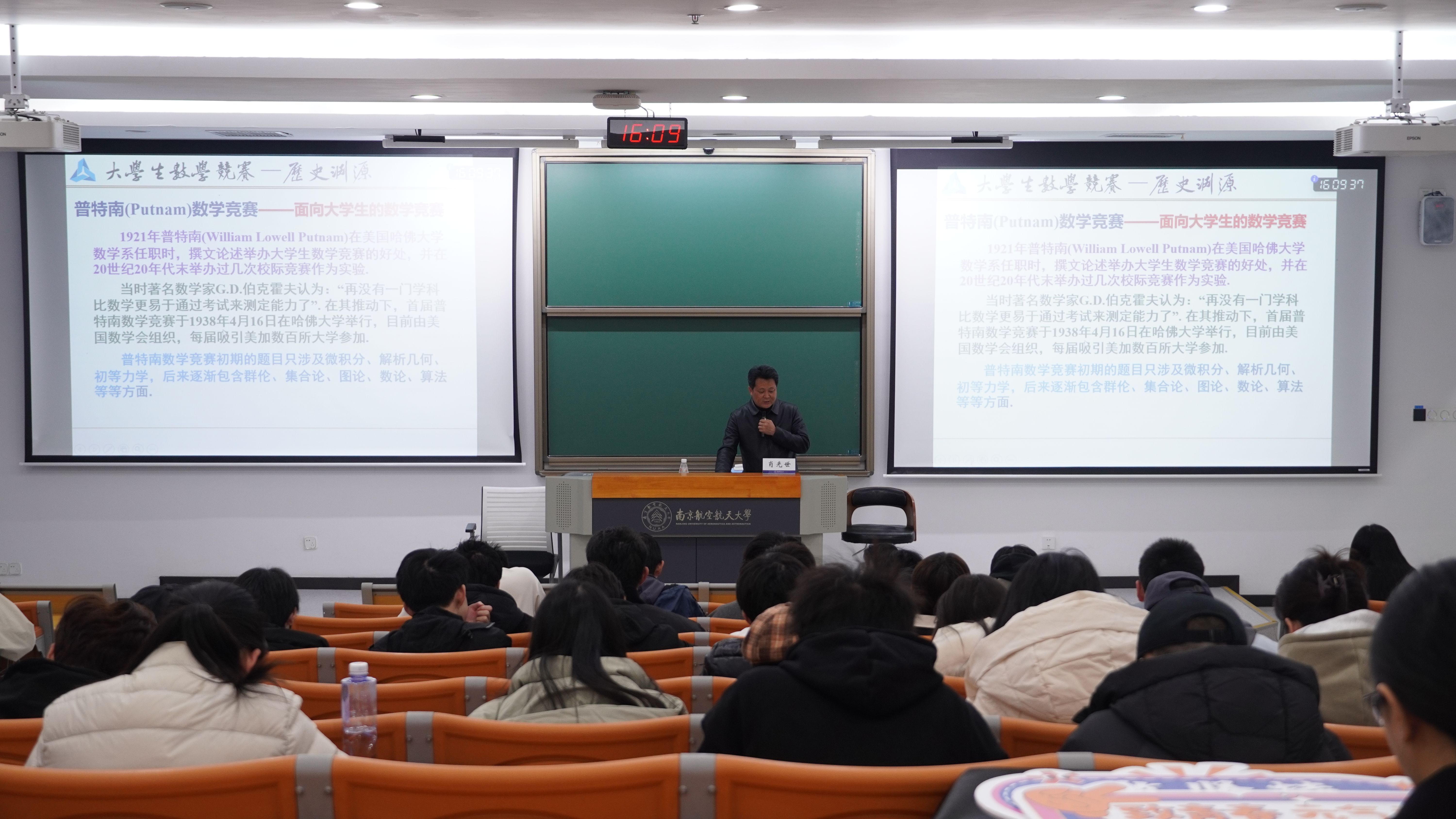 肖光世以学科竞赛与科创实践的核心特点为切入点,深刻阐释提升竞赛能力与科研素养对学生成长成才的重要意义,并梳理出切实可行的提升路径。在竞赛备赛指导环节,他聚焦全国大学生数学竞赛(CMC)、中国数学奥林匹克(CMO)、国际数学奥林匹克(IMO)、邱成桐大学生数学竞赛、阿里巴巴全球数学竞赛等国内外重磅赛事,深入拆解各类赛事的备赛逻辑与实战技巧,为同学们厘清备赛思路。